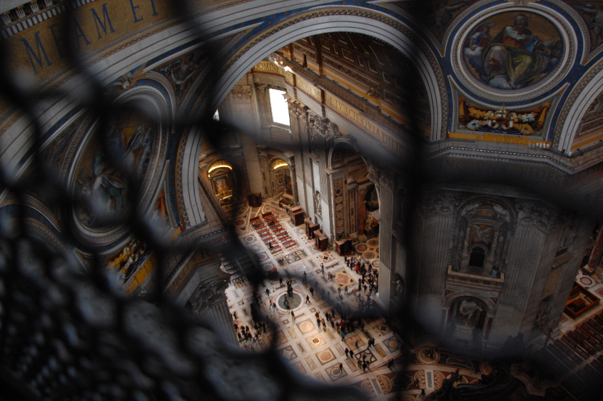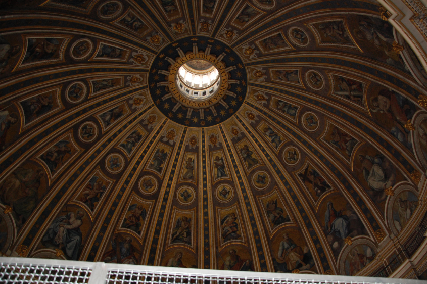 Собор Святого Петра впечатляет! Отстояли огромную очередь чтоб туда попасть. Сначала пошли на купол. На первый уровень доехали на лифте, за 7 евро с человека, пешком вход - 5 евро. На самую верхоту все равно шли пешком:) Муж почти у самого верха сломался, хотел вниз идти. но это было невозможно, т.к. эта лестница с односторонним движением и очень узкая ближе к верху:) Пришлось ползти до конца))) Обратно шли тоже по одностороннему коридору.