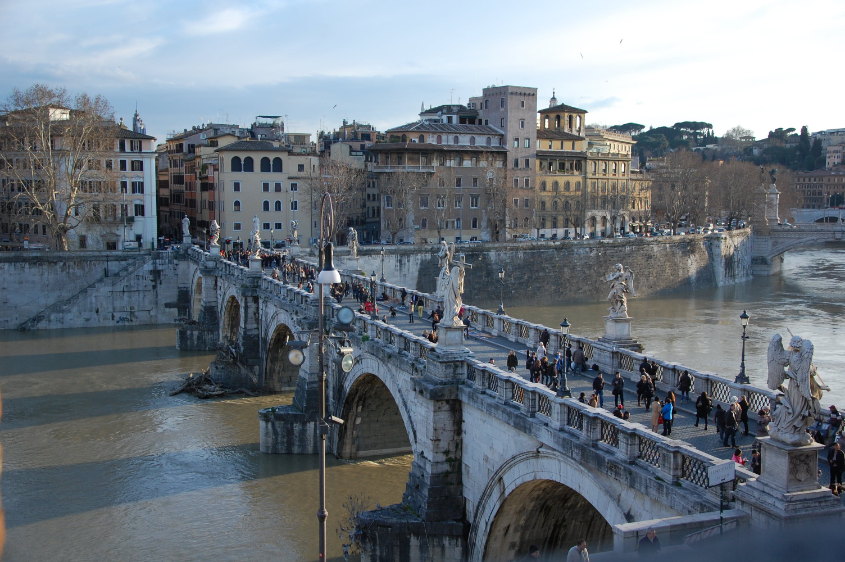 После обеда пошли в Замок Святого Ангела. Огромное здание, окруженное парком, к нему ведет красивый мост через Тибр. Внутри особо делать нечего. малюсенькие комнатки, в основном пустые. Фотографий мало, т.к. у всей техники, где есть фотоаппарат, сели батареи(
