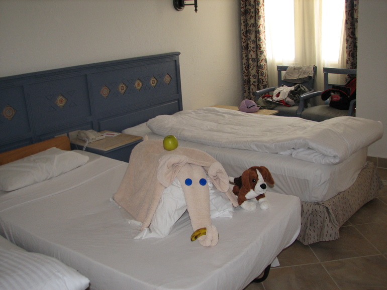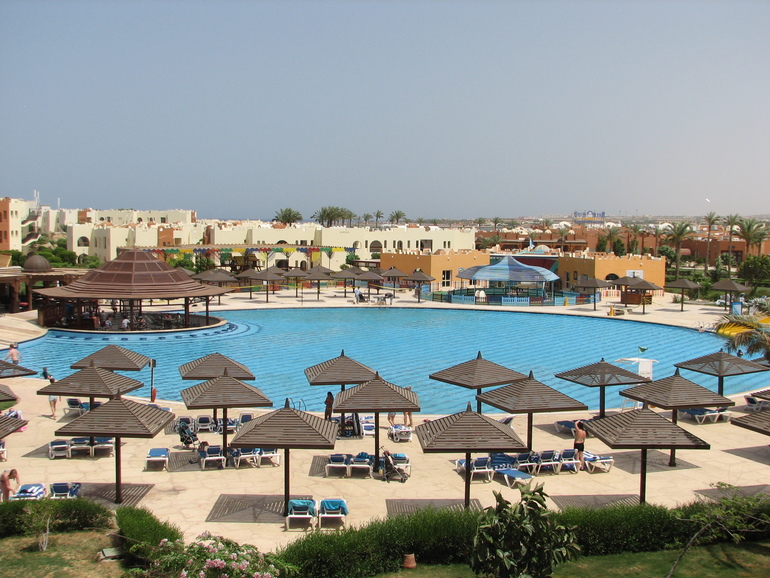 Номер: ездили 4 взрослых и один ребёнок, номер не большой, так как мы не брали семейный номер, у нас был STANDARD ROOM / 3+1. Привели нас в номер, мы сказали, что с нами ребёнок и нам нужна дополнительная кровать – через 10 минут нам принесли эту кровать. Кровать была большая и очень удобная. Таким образом, у нас в номере стояли 4 кровати, большой стол, мини холодильник, ж/к телевизор, 2 тумбочки между кроватями, маленький столик, 2 кресла и висело большое зеркало, ну и, конечно, кондиционер. Это было в основной комнате. Кроме этого был довольно просторный коридор с большим шкафом и скамейкой, на которой можно было посидеть, и шикарная ванная комната + балкон со столиком и 2-мя стульями. Балкон выходит на сторону бассейна, до моря и основного ресторана было идти недалеко, НО, дверь выходила на строительную площадку, где постоянно работали рабочие - египтяне. Они ко мне не приставали, шума не создавали, но я, ясно дело, побаивалась одна ходить в номер, так как, чтобы попастьв номер, приходилось проходить по пустынному коридору.