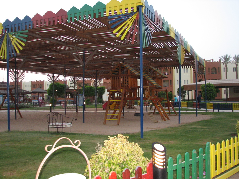 Территория отеля: Просто огромная! Достаточно зелёная и красивая. Было несколько бассейнов, мы, по-моему, не во все даже успели сходить. Для детей было 3 бассейна – «лужа», как называл его мой муж – бассейн очень мелкий, наверное, для тех кто только начал ходить; второй бассейн для деток постарше – он с маленькой горкой – осьминогом и бассейн, который постепенно переходит во взрослый бассейн. Была просто шикарная детская площадка!