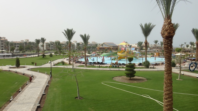 На утро поняли что у нас очень удобное расположение номера, 2 этаж, номер 1011, мы могли не спускаясь вниз, пройтись по коридорчику, если можно его так назвать, который идет практически от номера к главному ресторану, с балкона вид на детский бассейн и на рестораны