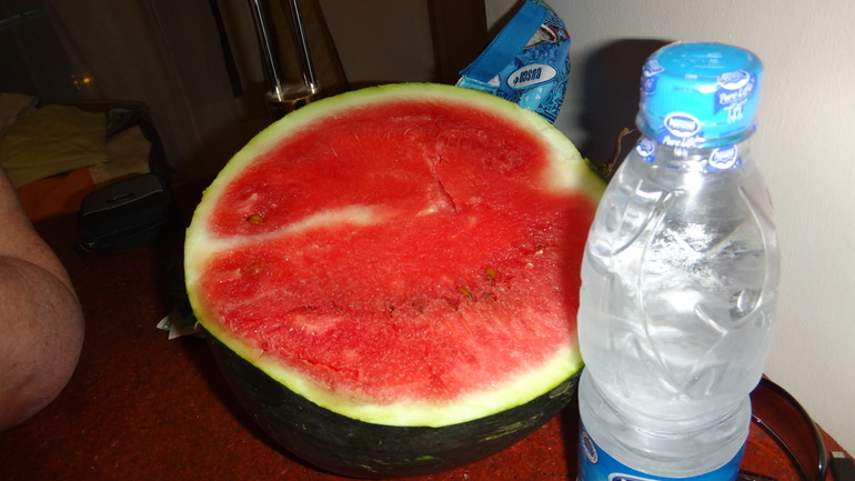 Арбузов не было, а хотелось, мы ездили в Сензо Молл, там магазин как наш Ашан, купили там арбузик 6,5 кг за 70 руб(примерно посчитали), очень вкусный