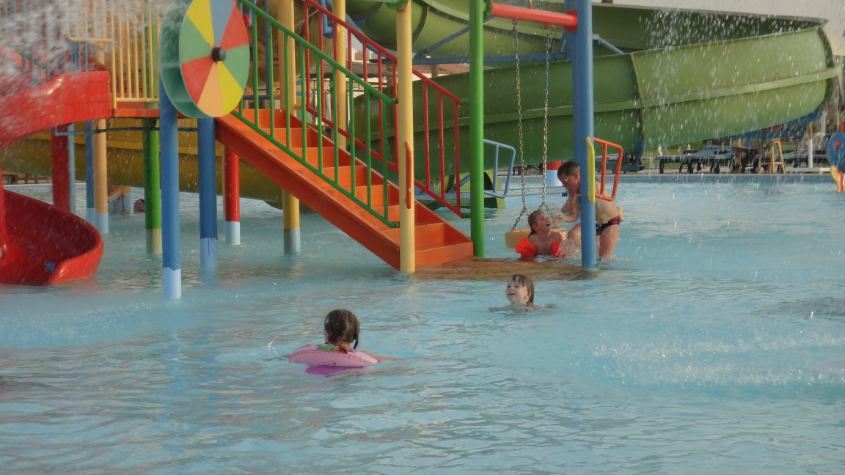 возле бассейнов обязательно сидят спасатели детям без нарукавников плавать не разрешают.