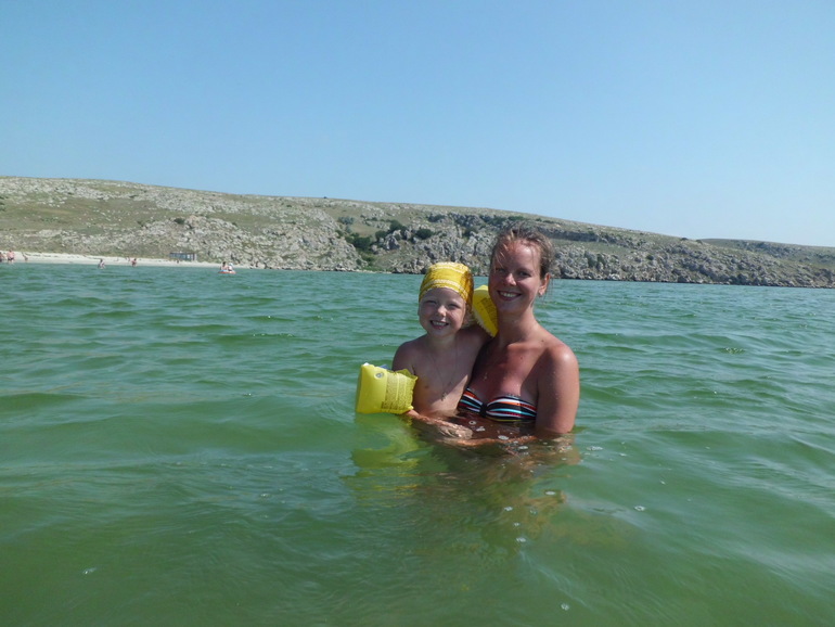 Черное море встретило нас волнами, поэтому Ксюша просидела все дни на пляже под зонтиком, затащить ее в воду было проблематично- большие волны и у берега сразу глубоко. Пляжи там есть разные-галька,песок или ракушечник. Мы были на всех, разницы особо никакой, на гальке даже как-то приятнее было))