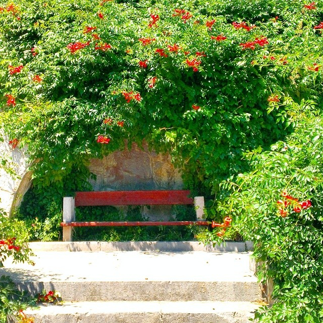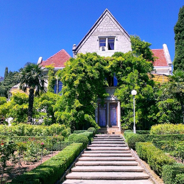 на этом месте было построено самое первое поместье Романовых в Крыму. Дворец был деревянным и сгорел. Потом на его месте построили эту ротонду на память. Найди мальчика в цветах...