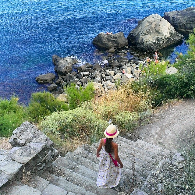 Спуск на дикий пляж в Алупке. Ниже, камень Айвазовского, он там рисовал свои картины