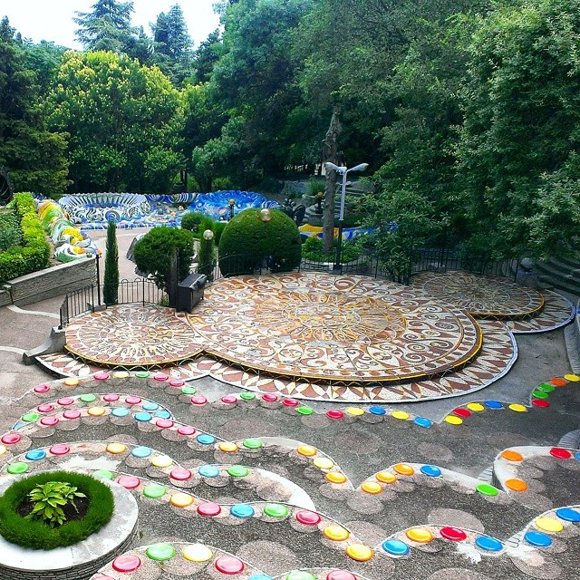Большой парк богат на редкие экземпляры растений. Вековые сосны, разные средиземноморские растения, много цветов и просто фантастические виды со смотровых площадок. Есть скромная детская площадка, лифт на пляж (всего 15 руб.) и летнее кафе у фонтана, где можно довольно вкусно пообедать за 150 руб (комплексный обед).