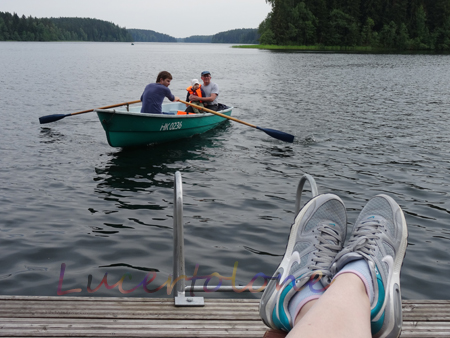 Для тех, кому важны цифры: стартовали из Москвы в 4 утра, в 10 были на месте, благополучно миновав все пробки (самая жесткая в районе Вышнего Волочка, в час пик можно простоять несколько часов). Дороги вполне себе терпимы (без фур была б идеальной), так что я сама прорулила эти 6 часов и даже получила удовольствие. В том числе и от тишины. Спустя два часа после начала поездки Дима все-таки уснул и большую часть проспал. А так в 4 утра был бодрячком и с криками "поехали на Ужин" (это озеро, на берегу которого мы жили) собирался в дорогу.