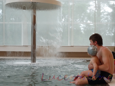 Это и есть детский бассейнчик с фонтанчиком. Родителям разрешают сопровождать малыша, без фанатизма, конечно, все-таки дети купаются. Взрослым есть, где поплавать, особенно если не лениться и вставать пораньше ))