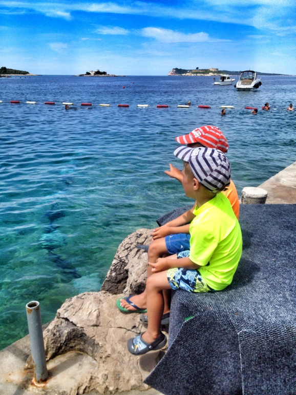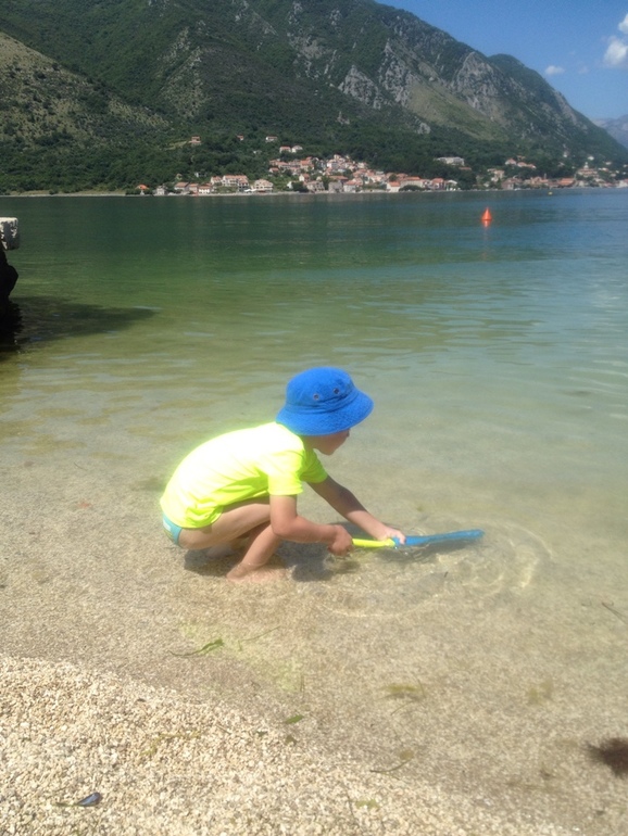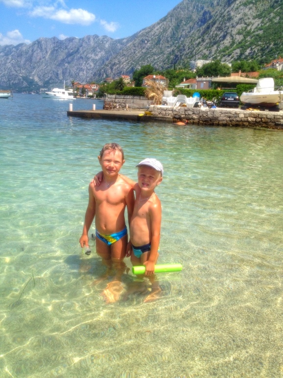 Немного о том месте, где мы уже второй год подряд отдыхаем и не променяем это место на другое, это Котор, пригород Доброта, место это не курортное, здесь нет оборудованных лежаками пляжей, за исключением пары мест, но те пляжи скорее больше для молодежи, где можно погонять на скутере, на лыжах, на таблетке, даже есть FlyBoard, лежак там стоит всего 2 евро, есть небольшая детская площадка и Wi Fi, мы этот пляж нежно полюбили!)))