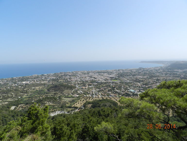 Пройдя по аллее можно попасть на небольшую смотровую площадку с которой открывается просто потрясающий вид! Кстати когда вы будете лететь на остров то ваш путь будет проходить недалеко от Филеримоса и даже можно будет увидеть 17-тиметровой крест украшающий один из уголков холма.