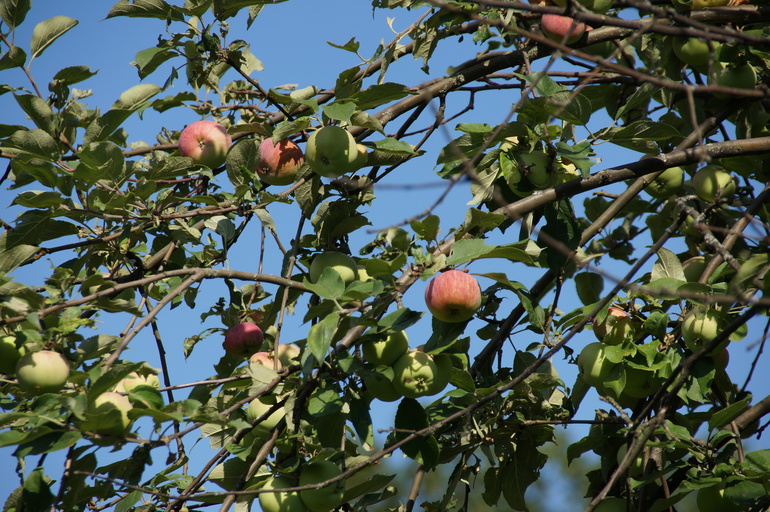 А еще в усадьбе зреют яблоки всевозможных сортов: