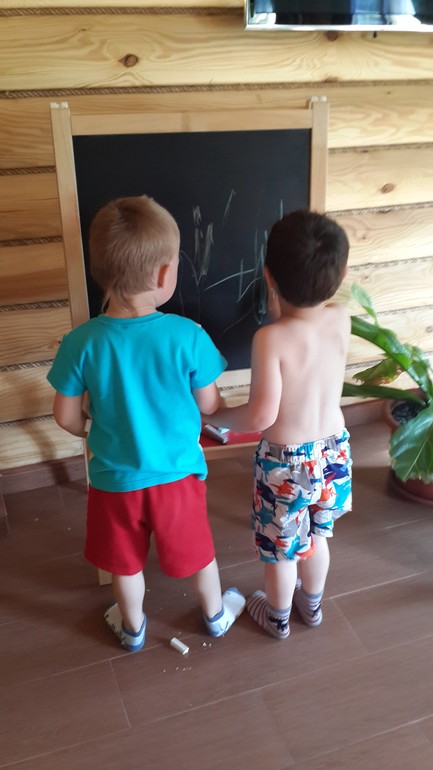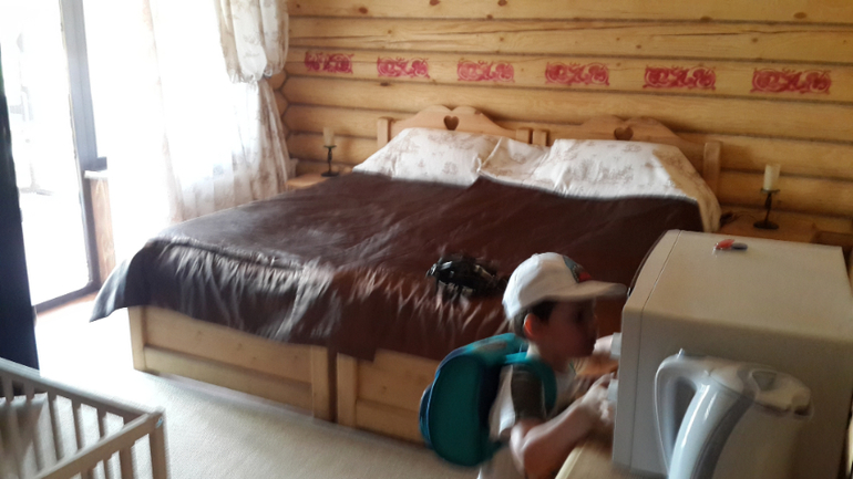 Больше всего понравилось, что из номера есть два выхода. Один в общий холл, где стоит огромный стол, диваны, телевизор, детский стол/стулья и доска для рисования. Очень удобно, укладываешь детей спать, а сам сидишь "чаи" распеваешь) А второй выход с балкона прямо на улицу.