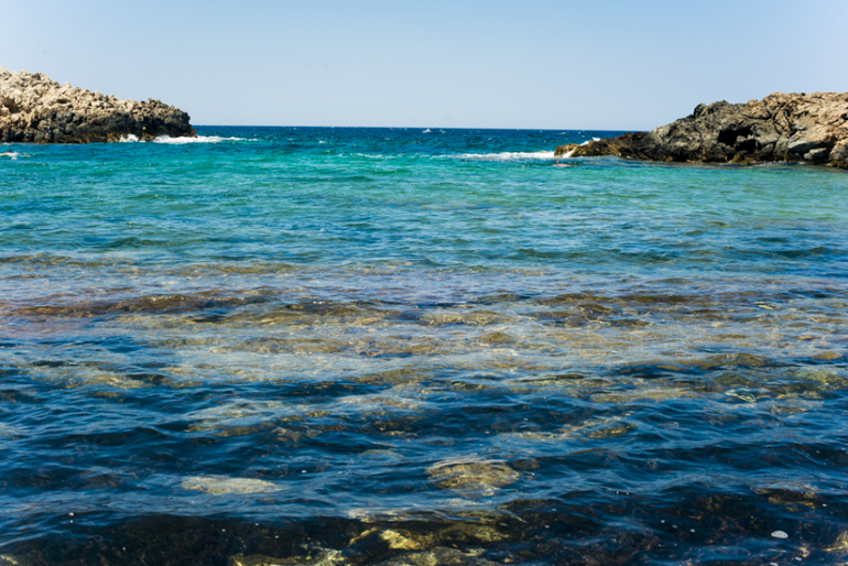 Дальше мы отправились в Лимнионас. Там был запланирован обед в рыбной таверне (не особо впечатлил) и купание. Бухта нам очень понравилась. Вернее, две бухты. В одной красивые скалы и сильные волны: