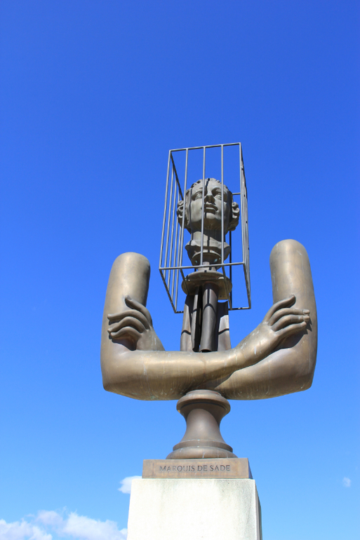 Вступаем на территорию Маркиза. Скульптуры сразу подсказывают нам - место это не простое. Очень-очень непростое. Говорят, что этот замок Маркиз де Сад однажды поджег и уехал в соседнюю деревушку, чтобы полюбоваться, насколько красиво он будет гореть. Ну для человека, чьим именем назван садизм, это практически неудивительно.