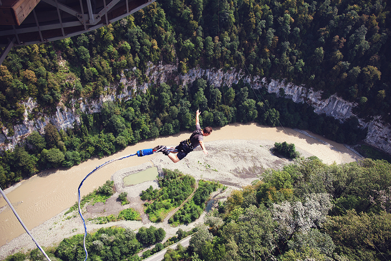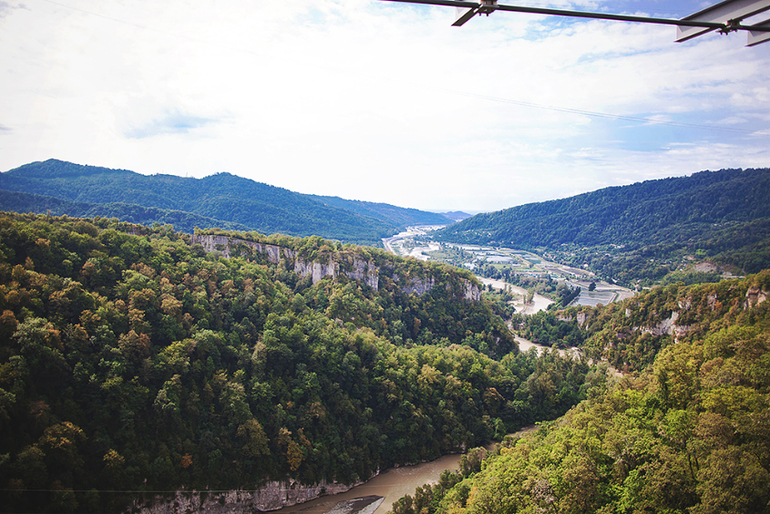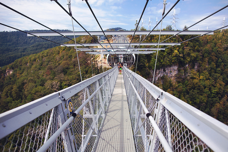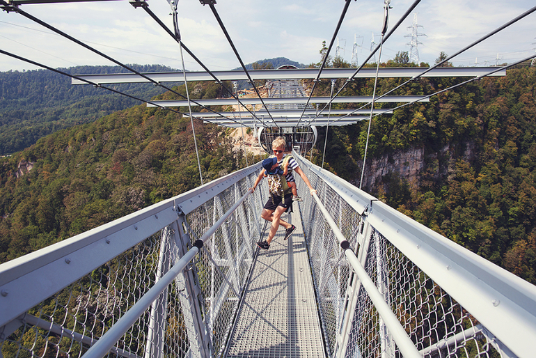 пока работает в тестовом режиме, в ноябре ожидается официальное открытые, будут прыжки уже с 200 метров, качели(170 метров) и троллее над ущельем, где летишь со скоростью 150км/ч!! в общем на выбор приключений))) не знаю решусь ли я хоть на одно из них)))