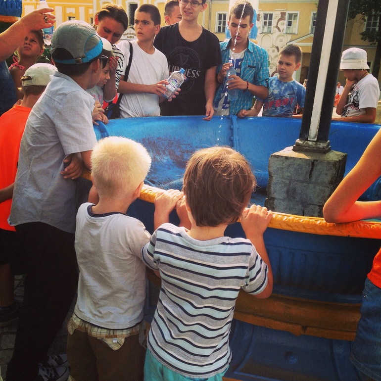 Здесь можно набрать святой воды, попить, или просто умыться, очереди небольшие, в основном, стоят дети