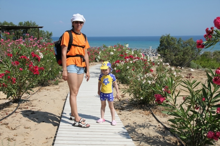 Сначала мы поехали на BANANA BEACH. Дочка быда в восторге от чистого песочка и хоть каких-то ракушек. Ведь на нашем пляже Мавратиз, что возле отеля, такого не было. На пляже есть кабинка для переодевания и душ. Также на пляже ходят люди, предлагают напитки, фруктовый салат, а также есть те, кто продаёт бижутерию, солнечные очки и плетёт фенечки.