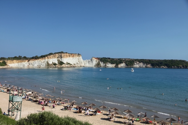 Пляж очень красивый, если смотреть на него с моря. Дочка сказала, что там красивые песчаные дюны)))