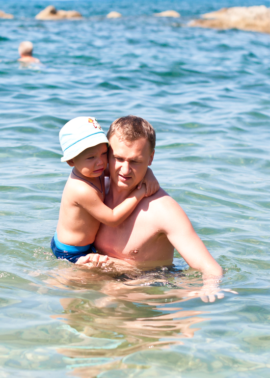 Тима прекрасно плескался в бассейне, а мы с мужем по очереди ходили купаться в эту бухту.