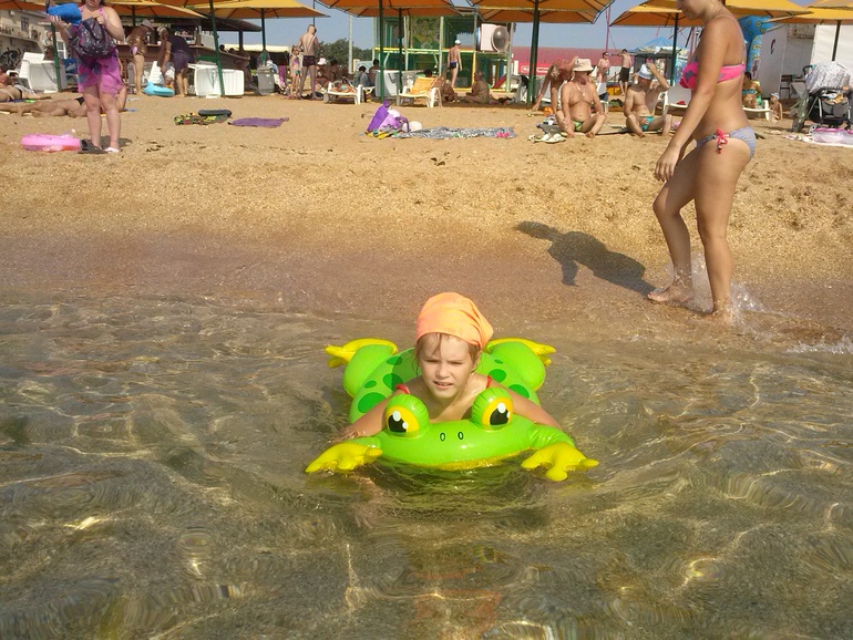 С утра вставали и шли в столовую завтракать, а потом на море, пока ещё немного народа.
