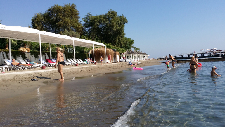 Развлекуха: ну что нужно для веселья двухлеток - море, пляж, карусели, зверушки и мини-диско! Вот все хорошо. Пляж - чистый, туалеты - чистые. Бар - рядом. Мы выбирали пляж, где только один ряд лежаков. Очень удобно - и они буквально в нескольких метрах от воды. Часов в 11 ходили в миниклуб. Для детей постарше там были игры и занятия, мои довольствовались играми в игровых комнатах. Прямо скажу - с игрушками у них не фонтан, но все же - достаточно разнообразный ассортимент увлекал их на час-полтора. Днем можно было еще пообщаться с собачками - прелестные пекинесы, дети постарше их выгуливали, мои только гладили J. Еще мы любили навещать фламинго и пони (и даже пару раз покататься на них). Хитом у моих детей были погони за петухами и курицами, которые рьяно защищали своих цыплят. Лунапарк - О, это стало нашей прямо традицией, поехать на машинке в лунапарк….до сих пор дети просят после ужина «поехать в лунапарк на машине». Лунапарк находится в другой части отеля, и большинство людей, в т.ч. детей, ходят туда пешком. Но моим детям доставляло особое удовольствие покататься на багги. Мы иногда вообще бесцельно на них кружок делали J Карусели предназначены для малышей и детей максимум лет до 6. Мои катались на всех, кроме колеса обозрения. Один раз нас чуть не выгнали с запретом кататься J)) потому что моя дочь во время движения карусели расстегнула ремень и встала….я тогда чуть в обморок не упала. Смотритель, срочно остановив карусель, снял нас и пару дней не разрешал нам кататься, но потом подобрел, с условием что она больше не будет (ну вы знаете как легко дают такие обещания 2х летки) Было еще мини-диско, но мои уже к тому времени были полусонные, так что, потанцевав немного, они просто наблюдали за происходящим. Очень понравились шоу - жаль что мы уже в конце узнали что они проходят. Но посетили парочку и я была приятно удивлена, что мои дети могут высидеть 20 минут, увлеченно смотря спектакль (Мадгаскар) Команда детской аннимации заслуживает особой благодарности. В ней были и турки, и болгарка, русские и англичанка, и еще другие национальности. Они с такой любовью относились ко всем детям - это ведь нельзя подделать! И дети это чувствовали и тоже их очень любили. Анниматоры питались в детском ресторане и зачастую помогали родителям накормить детей (не то чтобы они кормили их, но как могли увлекали их процессом) Детский бассейн: очень хороший, но я приверженец бассейнов, тем более на море. Пару раз сводила сына, потому что ему очень нравились слоники и фонтанчики. Плюс, что бассейн находится под тентом. Теперь отдельно расскажу про отношение сотрудников отеля и продавцов магазинчиков. Ну понятно, что продавцам нужно продать (а в отеле были в основном бутики с ценами покруче московских), поэтому они априори был супер-приветливыми и с взрослыми и с детьми. Знали всех по именам, всегда улыбались и приветствовали. Но даже поняв, что вы ничего у них покупать не собираетесь, они не меняли своего отношения к вам. Поэтому вот нельзя все списывать на их меркантильность. Теперь про сотрудников - случай с поваром и нашим заселением я уже описала. Про аннимацию - тоже думаю ясно выразилась. А что же другие - с кем напрямую не пересекались? Так вот - всегда все здороваются, улыбаются и горничные и садовники и бармены! Если нужно помочь - помогают. В ресторане - не раз случались казусы (и