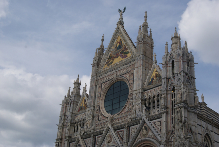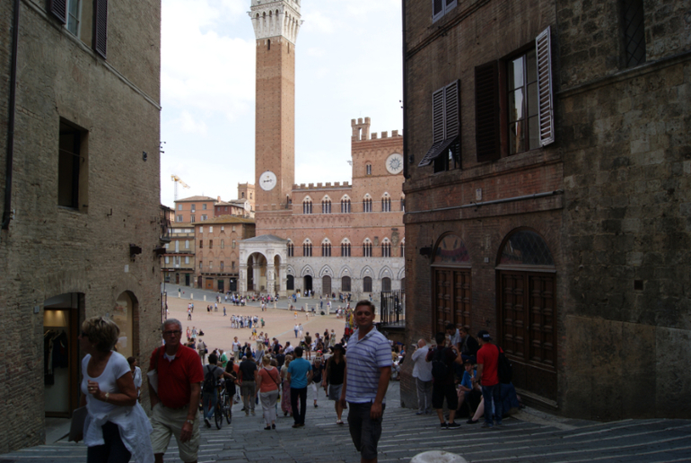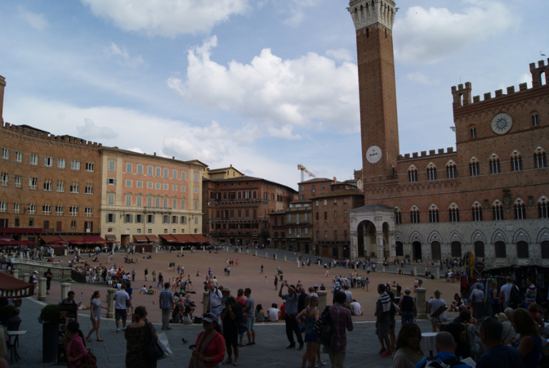 Сиена. Знаменита своей площадью ди Кампо, на которой 2 раза в год проводятся скачки. Причем зрители стоят в центре....а лошади носятся вокруг)))