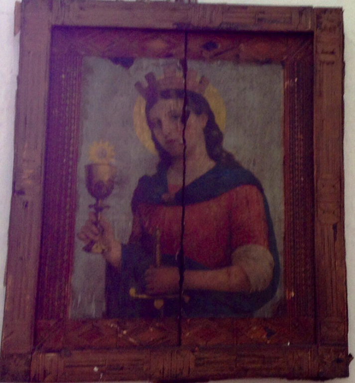 Св Варвара , этот калолический образ( изображение) не каноническое ,висит на гвоздике справа (почетное место) в этом критском монастыре думаю начало 19 века