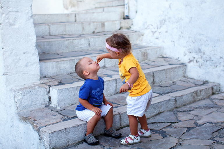 Всем надо поделиться друг с другом! Машуня кормит Мишу остатками мороженого)