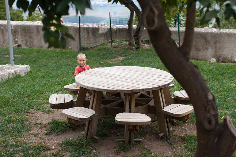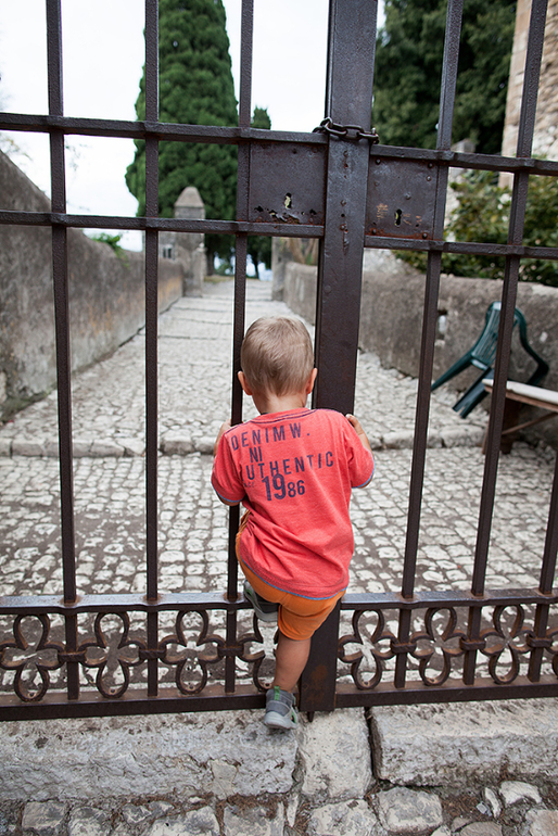 Миша пытается пробраться в крепость! там есть красивая крепость, но туда можно попасть только с экскурсией и итальянским гидом.. это не наш вариант! Миша расстроился, что его не пустили!