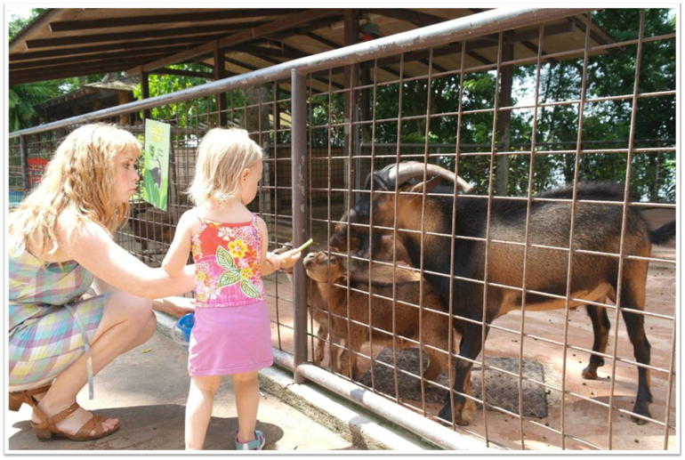 Там Таисия покормила животных (козочек) - она была прямо в восторге.