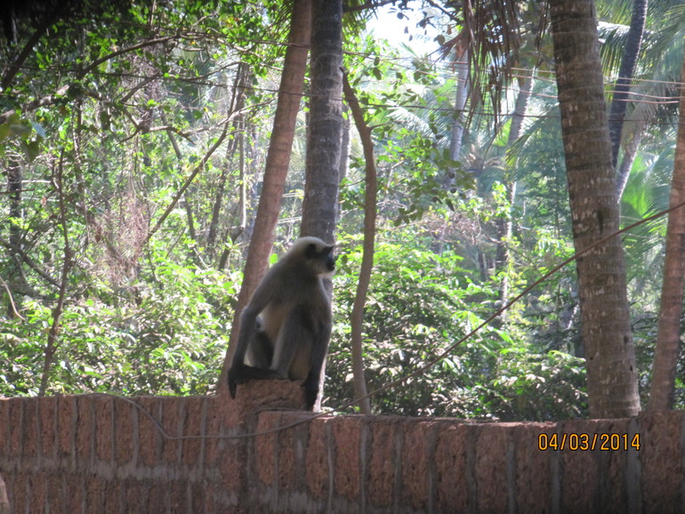 Эту обезьяну мы пару раз видели у нас во дворе - она мимо пробегала. Забавно было наблюдать, когда местные собаки гонялись за ней, ну прям как наши за кошками гоняются, а индийские так же за обезьянами бегают) И Обезьяна от них так же как и кошка скрылась на дереве))