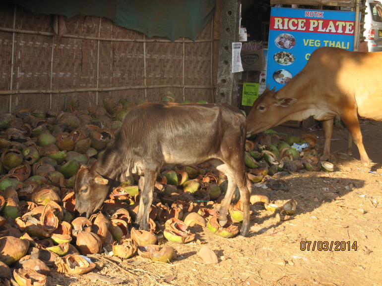 Ну, и конечно же, коровы)) Которыми меня все пугали, что они там спокойно по пляжу ходят и т.д. На самом деле на нашем пляже их не было. Вот, единственный раз, когда я увидела корову на пляже и сразу же ее запечатлила)) Но она не одна была)) В Арамболе видела рядом с пляжем коров - ели кокосы))))), у нас пару раз шедших по улице, и все.