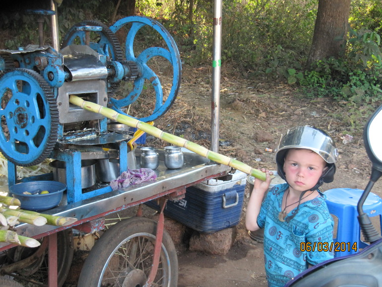 В один день я решила съездить до банкомата. Ну и заодно покататься, полюбоваться окрестностями. Это было интересно и увлекательно) По дороге не удержалась и все-таки остановилась попробовать тростниковый сок. Ммммм, это такая вкусняшка)) Но выглядит, конечно устрашающе: