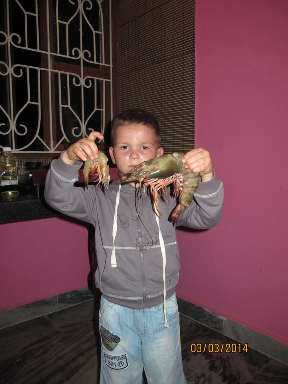 Съездили на фиш-маркет, правда первый раз поехали на такси, дороги я не знала, решила перестраховаться. Накупила много разных не знакомых фруктов и огромных креветок)) Вечером устроила праздник живота)))
