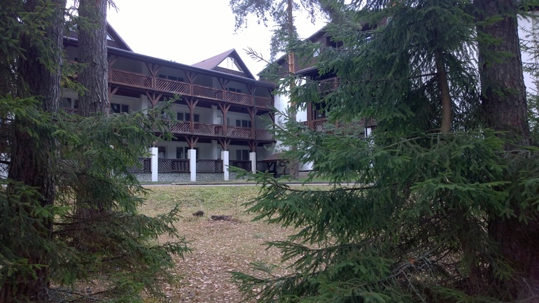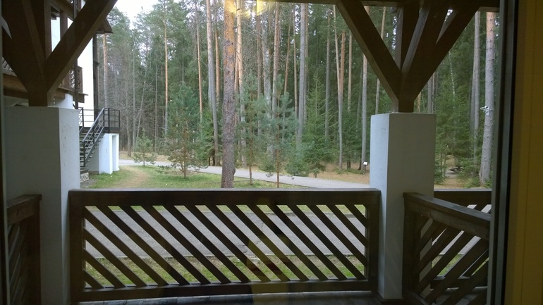 Территория отеля большая, много места для прогулок, вокруг одни сосны: