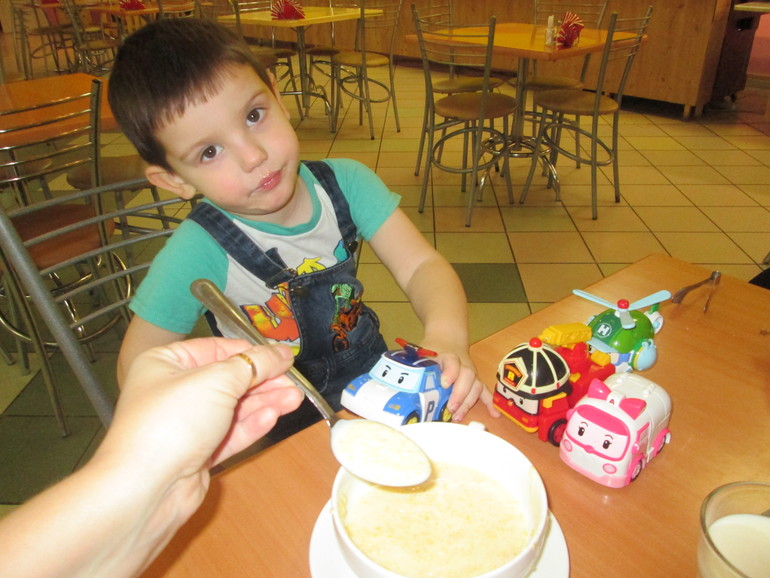 Сережа ел кашу! Значит она супер вкусная)