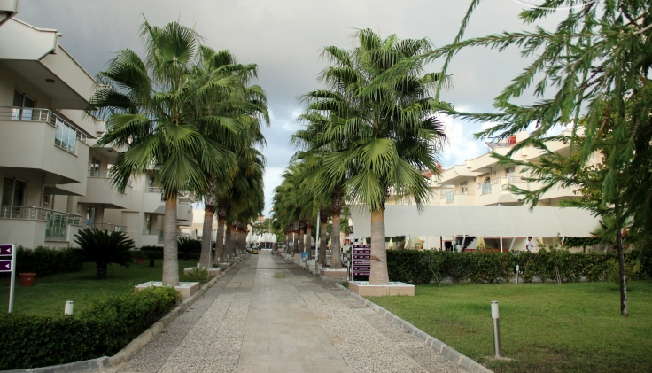 В ванной комнате раковина, унитаз и душевая кабина. Только средства для душа в дозаторах.Сам отель представляет из себя несколько т.н. улиц, состоящих из 2-х, 3-х и 4-х этажных корпусов. Также на территории расположено отдельно-стоящее здание ресепшн (в подвале хамам и сауна), 3 бассейна (взрослый, детский и с горками), бар, ресторан, детская площадка, сцена, магазин, а также палатки, где в определенное время раздают мороженое и пекут гезлеме с различными начинками.В отеле все аккуратно, чисто, сделано все с немецкой педантичностью. Около 70% немцев, так же отдыхают скандинавы, русские и турки.. В основном, семьи с детьми..