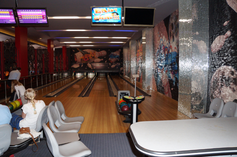 Для взрослых есть тоже зал игровых автоматов, бильярд, боулинг