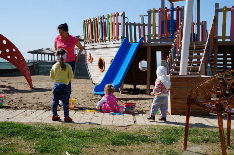Для детей там рай. Дают детские горшки, радио-няни, коляски, стерилизаторы бутылок, блендеры. Так же есть огромный детский центр. В нем кинотеатры, комната с каруселями и игровыми автоматами, огромный лабиринт. Ребенка можно оставлять с года. Мы несколько раз оставляли дочку на пару часов, когда был дождь на улице. Так же на улице есть карусели для более старших детей, площадки и огромный дино-лэнд с множеством динозавров.![]()