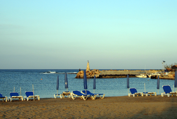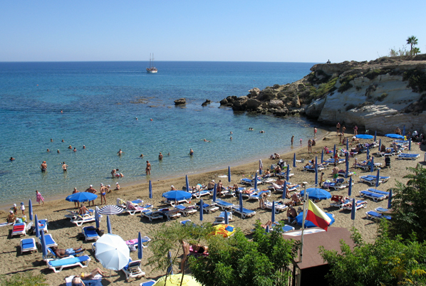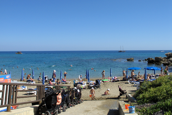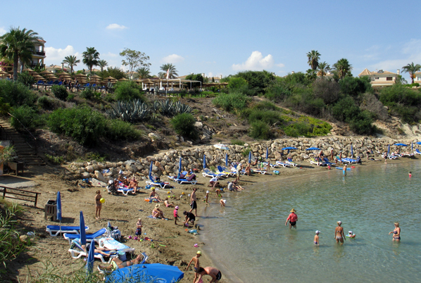 Ранним утром там можно встретить только кипрских пенсионеров, но ближе к полудню их сменяют отдыхающие из Malama Beach Holliday Village. На узкой полосе пляжа всем хватает места - и на шезлонгах и на пляжных полотенцах. Стоимость двух мест под зонтиком 7,5 евро.