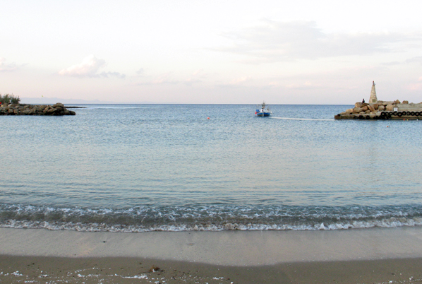 Отличный пляж для отдыхающих с маленькими детьми. Пляж песчаный. Вход в воду пологий - 30 метров до пояса, еще столько же до двухметровой глубины, а дальше все глубже и глубже. Вода чистая и прозрачная не только утром, но и вечером. Зона купания определена буйками. От берега можно отплыть на расстояние 400-500 метров. Спасателей нет. Кабин для переодевания и душа нет. Но есть киоск с мороженым и прохладительными напитками.
