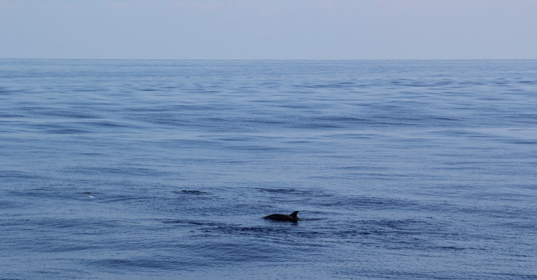 Мы даже не догадывались, что уже через час мы увидим дельфинов в открытом море. Я не раз была в дельфинарии, видела и даже прикасалась к дельфинам, но в открытом море ни разу не удавалось увидеть их. Так как мы заняли не самые лучшие места на катере, то фотографий практически не получилось.
