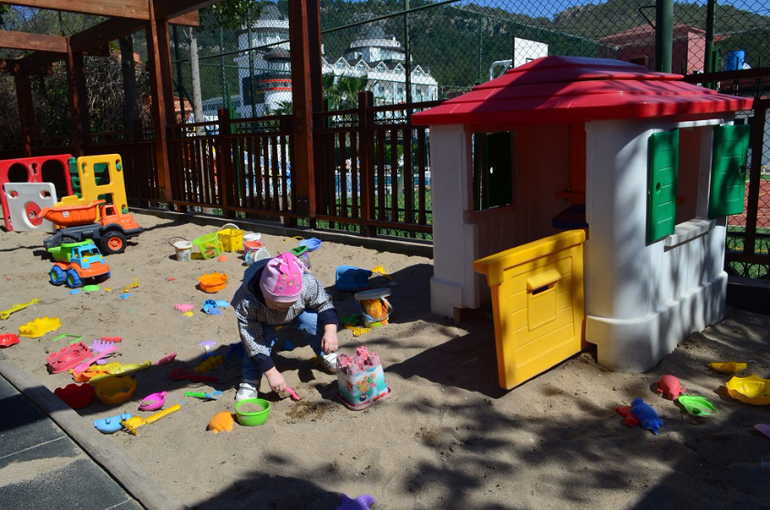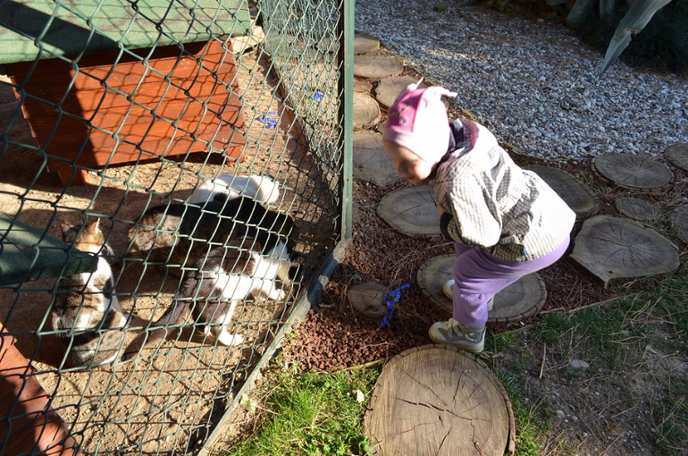 Покушали и конечно на прогулку. Нашли на территории отеля вольер с бездомными кошками, для них построили домики и кормят их. Они выглядят ухоженными и довольными жизнью.Затем отправились на площадку погулять.