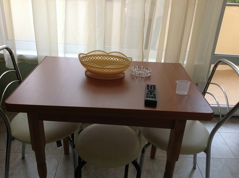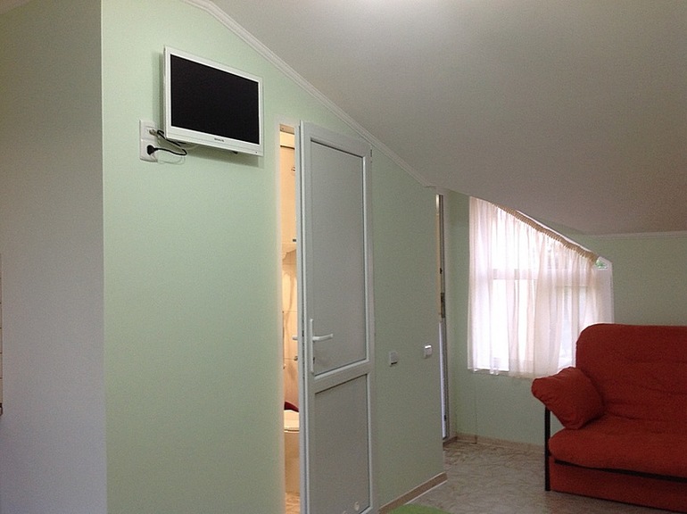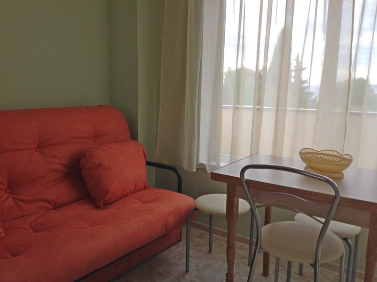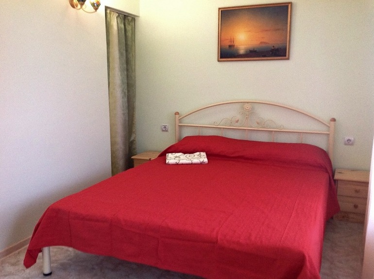 . Рядом есть продуктовый магазин, чуть дальше и фруктово-овощной пятачок. Остановка маршруток в 1 минуте от дома. Теперь по номерам-у нас есть однокомнатные и двухкомнатные номера. В каждом номере есть кондиционер,телевизор, wi-fi, кухня, санузел с душевой кабиной, двухспальняя кровать и раскладной диван, также шкаф для вещей. Во всех номерах,начиная со 2го этажа есть балкончик с видом на море и горы. Во дворе есть зона барбекю, также место для авто. Относительно цен, при заблаговременном бронировании: