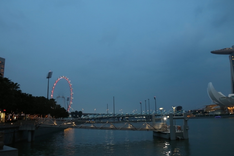 Неспешная прогулка мимо основных достопримечательностей, по набережной Клар-Ки заняла от нашего отеля до места назначения минут 30! Вот вам вечерний Сингапур во всей красе