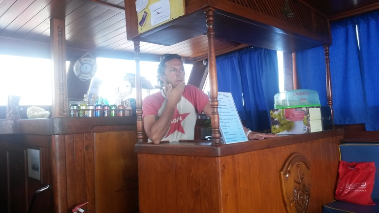 На борту работал бар, где бармен-итальянец Альберто очаровывал женскую половину и угощал коктейлями (2-4,5 евро), пивом, соками и снеками.