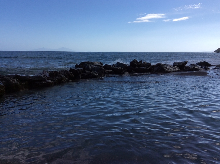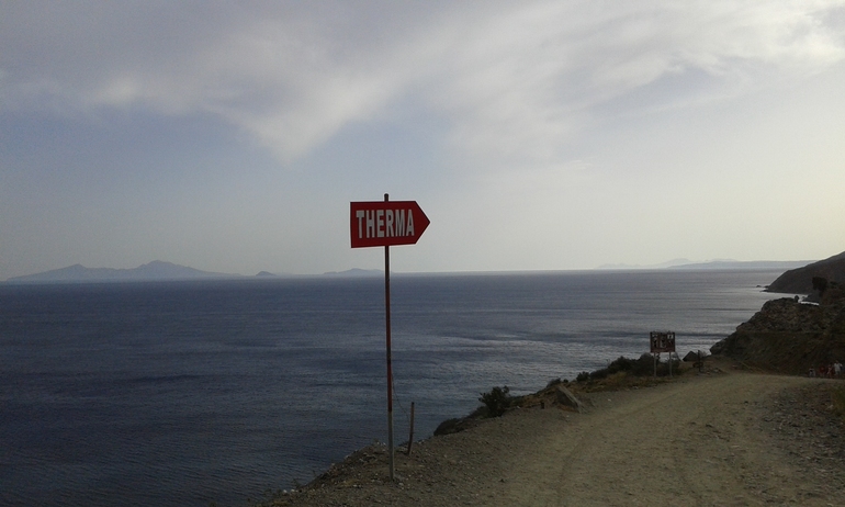 За три года нашего отсутствия появилась пара кафешек внизу, почти у самых терм, поставили зонтики из соломы, лежаки - окультурили термы. А еще появился живой транспорт - ослики - не всякий отважится спуститься, а уж тем более подняться пешком - все удовольствие 5 евро! К термам можно спуститься на а/м, есть дикая парковка.