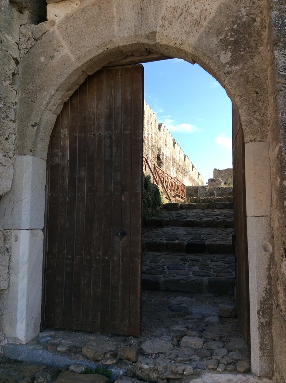 Развалины старой рыцарской крепости, забирались на стены, заходили в церквушку. Заброшенный экспонат, все поросло колючкой, есть освещение и билетный ларек, туалеты, но, видно, не сезон, пока вход свободный. С крепостных стен открывается красивый вид на горы и море.