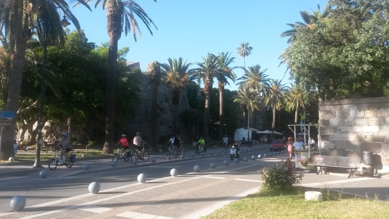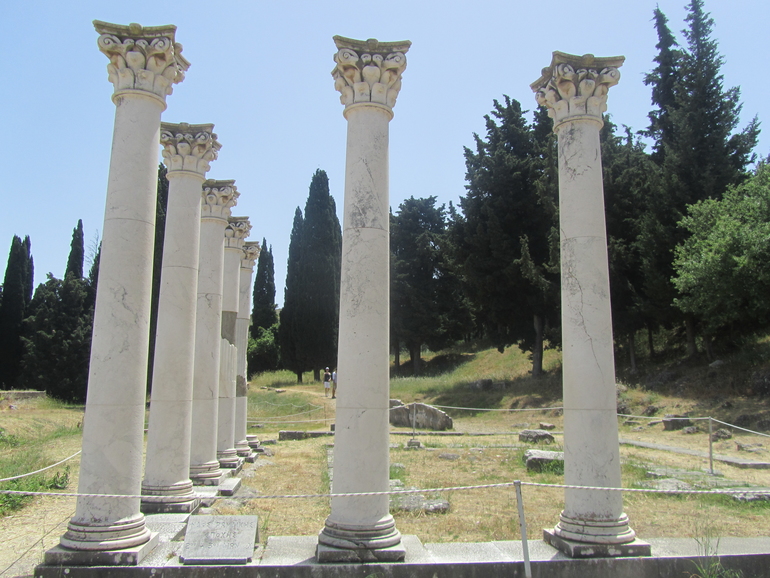 Погуляли по центральной площади (она крошечная), зашли на центральный рынок (Агора), прошлись по улочкам, набережной с красивыми яхтами, по Пальмовому проспекту, бросили монетки в фонтан, навестили платан Гиппократа, сфотографировались с пушкой у крепости.